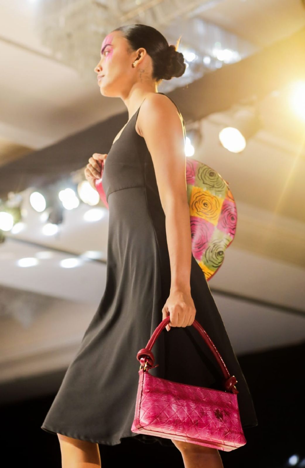 Arenas, quien celebra 30 años en el mundo del diseño, destacó que su colección está compuesta por 150 piezas de marroquinería, donde los bolsos de cuero ético pintados a mano son los protagonistas. “La colección se denomina 11:11 en honor a las Fiestas de Independencia de Cartagena, lo cual se traduce en color, alegría, gente, luz, reinas”, expresó la diseñadora, enfatizando su compromiso con la exclusividad y el impacto visual a través de colores vibrantes.