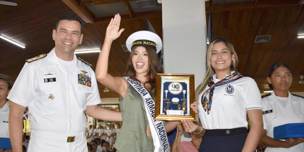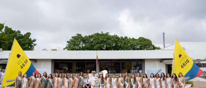 Las candidatas a Señorita Colombia siguiendo una tradición marinera, visitaron la Escuela Naval de Cadetes. Foto cortesia.