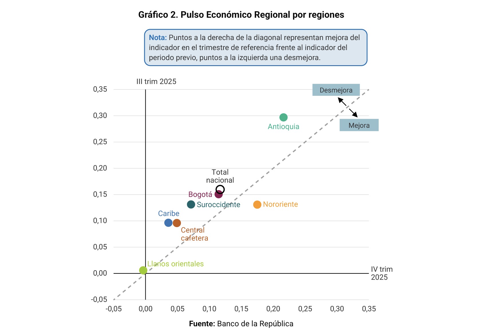 De acuerdo con el más reciente informe del Pulso Económico Regional (PER), publicado por el Departamento Técnico del Banco de la República este 22 de enero de 2026, la economía colombiana mantuvo una trayectoria de expansión anual durante el cuarto trimestre de 2025.