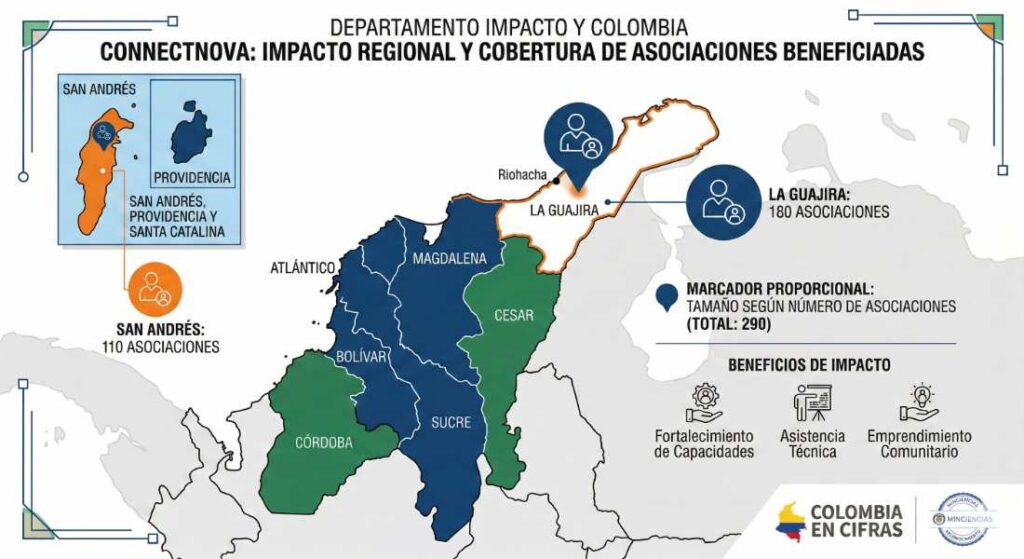 En términos de ejecución financiera, la organización reporta la gestión de recursos por un valor superior a los $130.000 millones de pesos destinados a proyectos de desarrollo regional. Este despliegue técnico registra un alcance en territorio de 290 asociaciones comunitarias que han fortalecido sus capacidades productivas, con una cobertura focalizada en los departamentos de San Andrés y La Guajira.