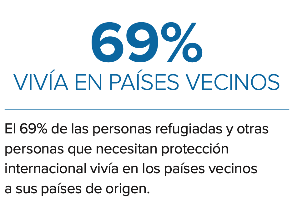 Esta cifra abarca a personas refugiadas (incluidas las personas refugiadas no cubiertas por el mandato de ACNUR), solicitantes de asilo, desplazadas internas y otras personas que necesitan protección internacional.