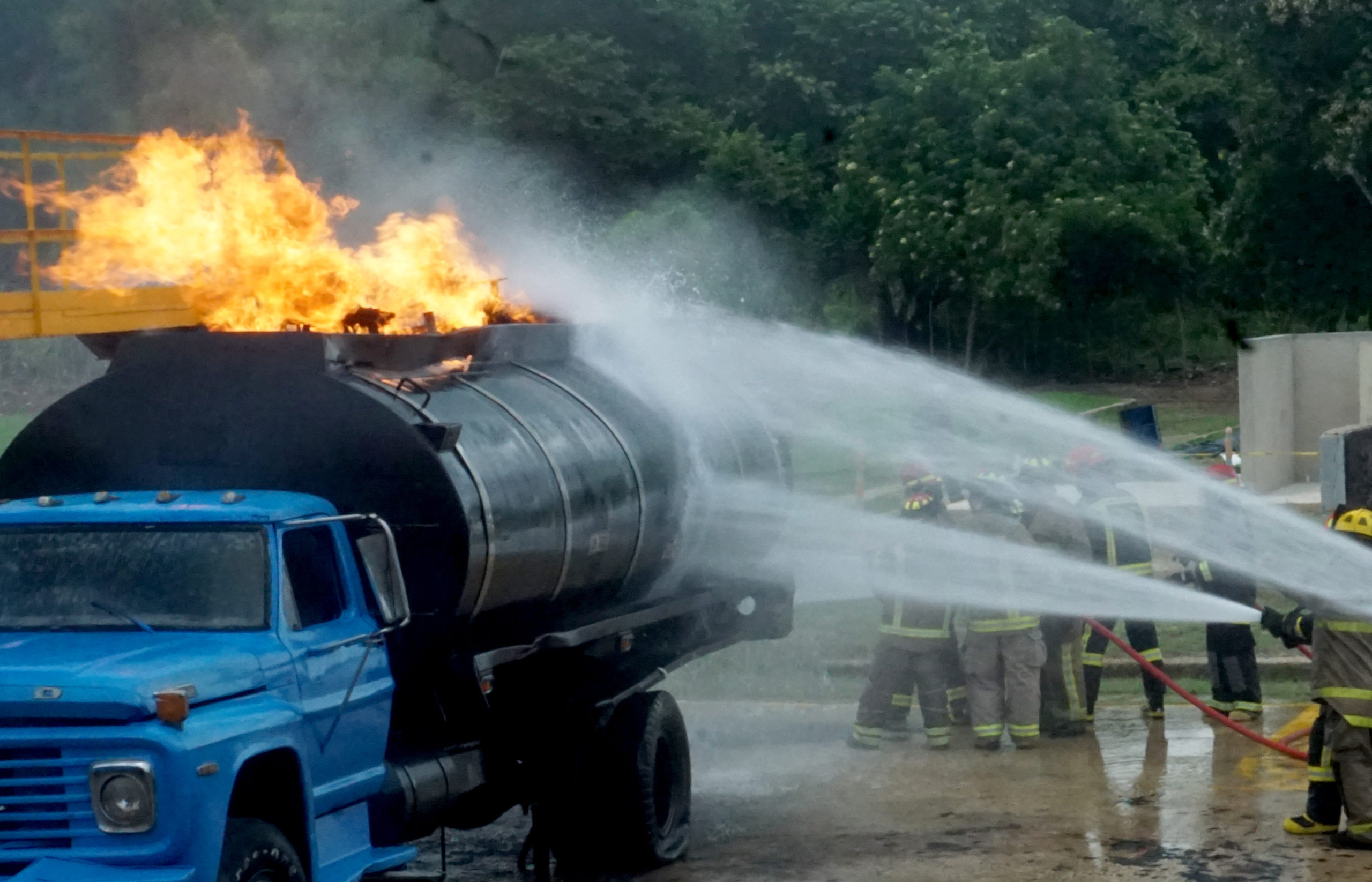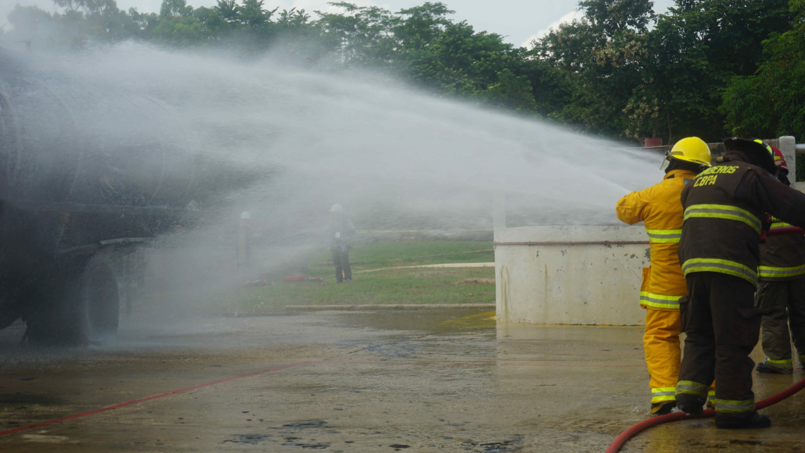 El nombre de Tachis es Carlos Acevedo, es miembro del cuerpo de bomberos mexicano , mide 1,84 y pesa 120 kilos. Bajo su responsabilidad está el entrenamiento de apagar el fuego en un carro cisterna. Dirige el grupo, las mangueras disparan el agua a presión y son sostenidas por más de cinco integrantes y como si se tratará de un juego , el fuego es controlado para el ejercicio con modernos equipos que lo incrementan o lo disminuyen en la medida que el entrenamiento lo solicita. El calor de Cartagena hace que el esfuerzo sea mayor, le dijo el bombereo mexicano al diario El Espectador.