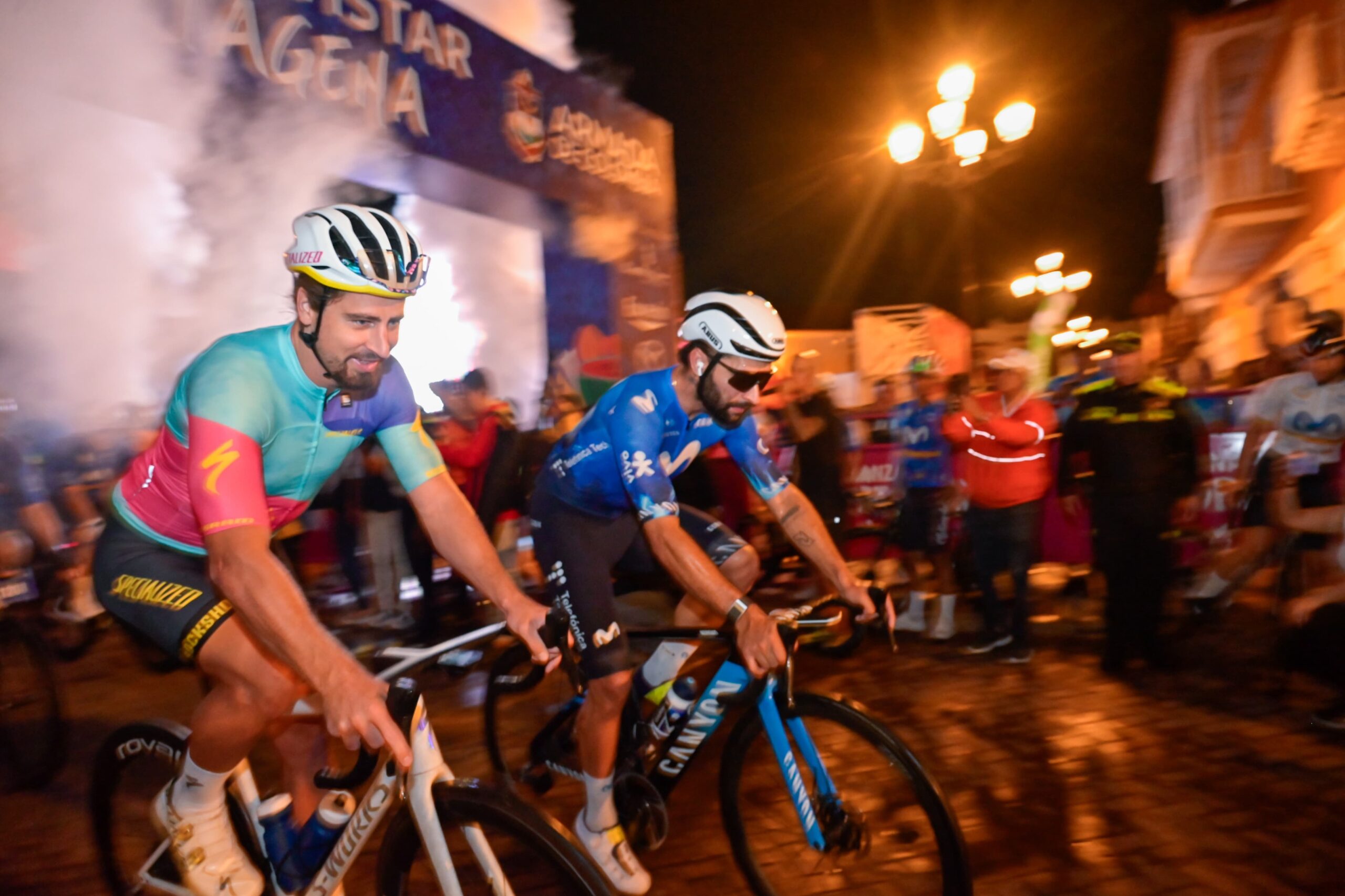 Las murallas y el mar son el primer escenario que recorrerán nuestros deportistas antes de encontrarse con el buque Gloria,  insignia de Colombia. En la carrera participaron, el campeón mundial: Peter Sagan, junto al alcalde de Cartagena, Dumek Turbay. Por Colombia, Fernando Gaviria y Juan José Florián “Mochoman”.